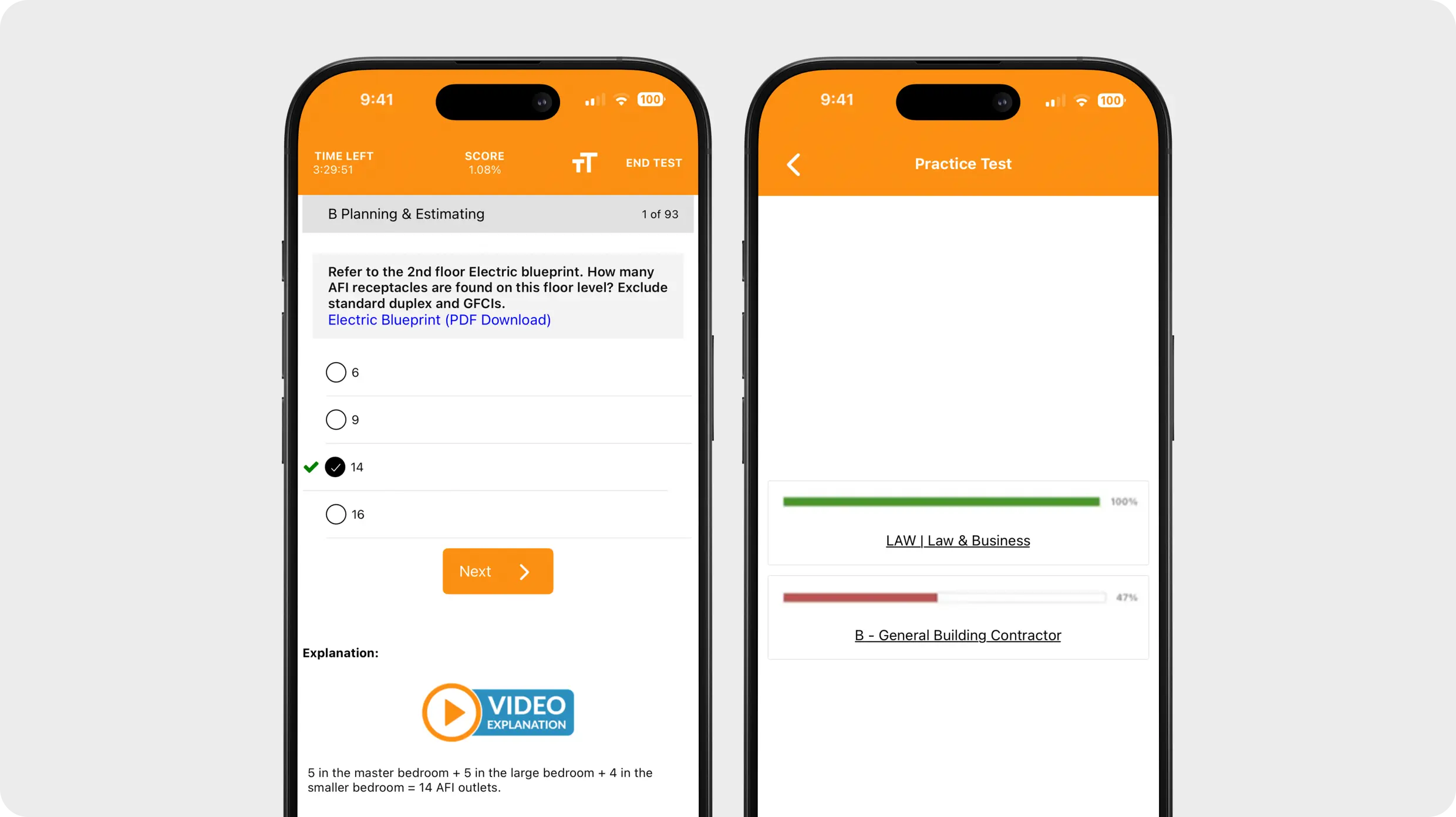 Unlimited access to timed, exam-style practice tests that mirror the real CSLB format. Get instant results after each test, with a detailed breakdown of your answers. Track your progress, focus on weak spots, and build test-day confidence. Practice anytime — no limits, no restrictions.