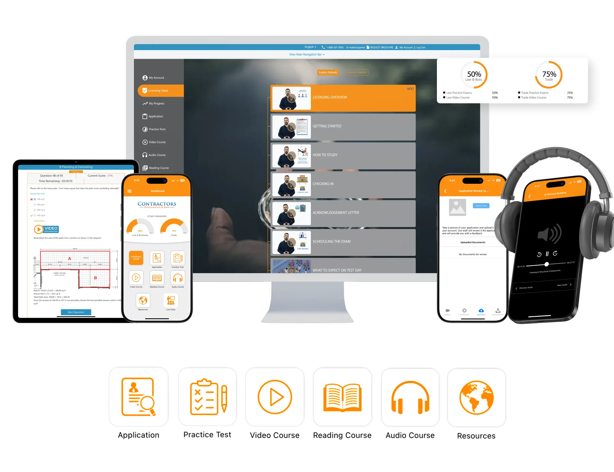 Study anywhere, anytime from desktop, tablet, or mobile. Our custom mobile app gives you full access to all video, audio, practice tests, and reading materials. Track your progress, review lessons, and prep for your exam on the go even during lunch breaks or weekends